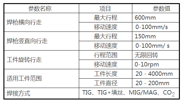 工件上料,定位,焊槍成一定角度可上下、左右和角度調整,工件旋轉, 焊槍縱向行走,成型美觀,焊接質量好。